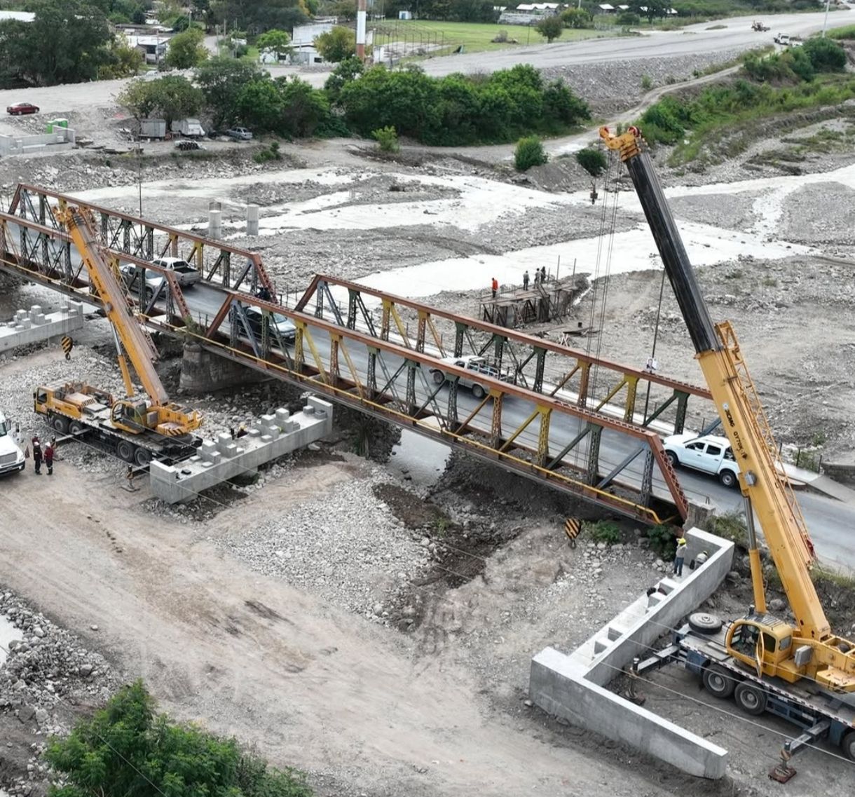 La construcción del nuevo puente sobre el río Vaqueros sigue dando pasos clave y ya entró en una etapa central: comenzó el montaje de las vigas que sostendrán la estructura principal.